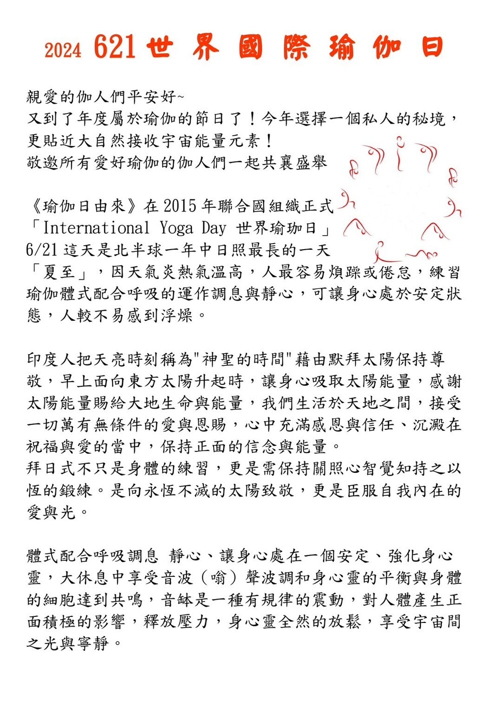 慶祝2024國際瑜伽日,協會舉辦各項活動項目
